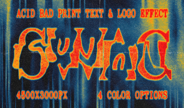 This effect is not broken — it’s hallucinating in high resolution — melting reality into a kaleidoscope of warped glyphs, radioactive halftones, and psychedelic smears that look like they were ripped straight from a dream where printers rebel. With 4 retina-frying color options and a hi-res Smart Object-equipped PSD, this glitch-drenched monster turns your logos and text into something between a heatwave and a vision quest.