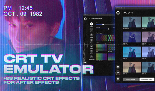 Helps you recreate the vintage look and style of old CRT TVs and monitors. While creating the effects is as easy as drag and drop, it lets you customize every aspect of the footage to the smallest detail.
