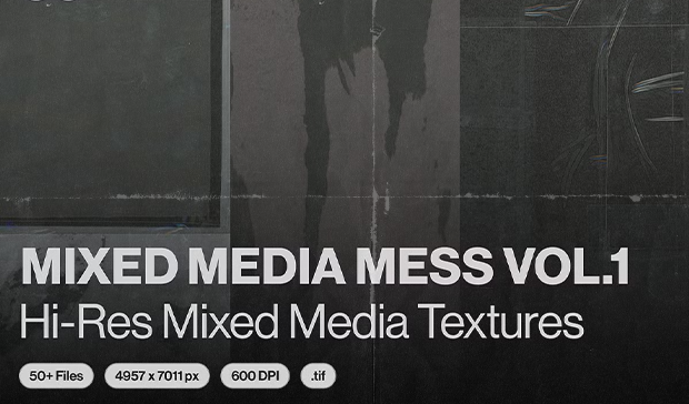 Introducing MIXED MEDIA MESS VOL.1, a collection of 59 high-resolution mixed media texture scans that will bring a unique and artistic touch to your designs!