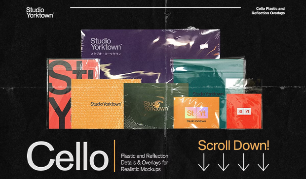 Studio Yorktown is a one-stop collection of high-resolution images carefully photographed and edited to help you realistically simulate plastic wraps, shrink wraps, cling film, cellophane, vacuum sealing, blister packs and bubble wrap in your mockups.