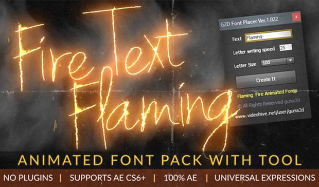 Fire Text Flaming Animated Font Pack with Tool, Makes your event promo dramatic and vibrant, Add Realistic Fire Flaming feel to your Titles, Lower-thirds or any Text Content. Very simple and easy to use character placer script, No need to drag and dropping characters, Just enter your text, the tool does everything for you.