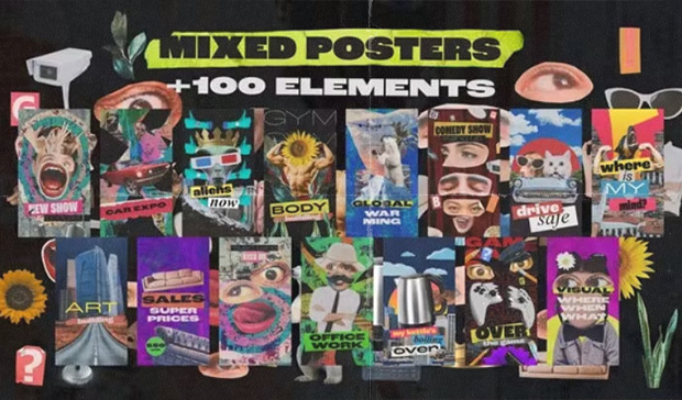 Mixed Posters and 100 Collage Elements is a versatile After Effects tool that allows you to craft stunning collage-style artwork.