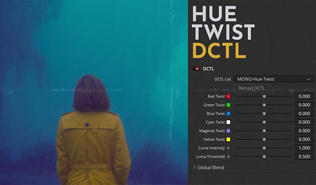 The “Hue Twist” DCTL works by ‘twisting’ hue values towards their neighboring colors, but the interesting aspect here is that it does so based on the brightness value of the respective hue. Darker areas are automatically shifted towards the opposite adjacent hue value than lighter areas, adding a depth of complexity to the color manipulation process that goes beyond standard hue shift methods.