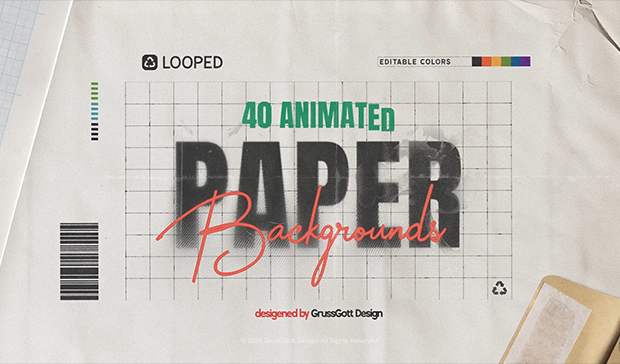 Add a unique, handcrafted touch to your projects with the Paper Loop Backgrounds pack for After Effects. This diverse collection of 40 animated, stop-motion-style paper textures is perfect for anyone looking to bring a creative and organic vibe to their videos. With 4K resolution and seamless loops, these backgrounds are ideal for a variety of projects, from YouTube videos and social media content to professional video productions and motion graphics.