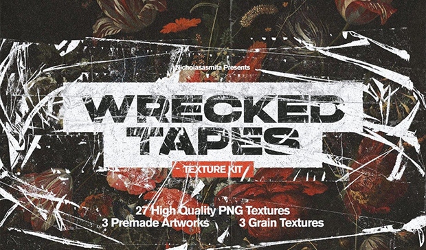 Simple yet remarkable materials — that’s the ingredient to enhance the audacity on your artboard. This archive contains 3 premade PSD artworks (A4 format, print-ready), 27 high-quality plastic tape textures and 3 grain textures in PNG format.
